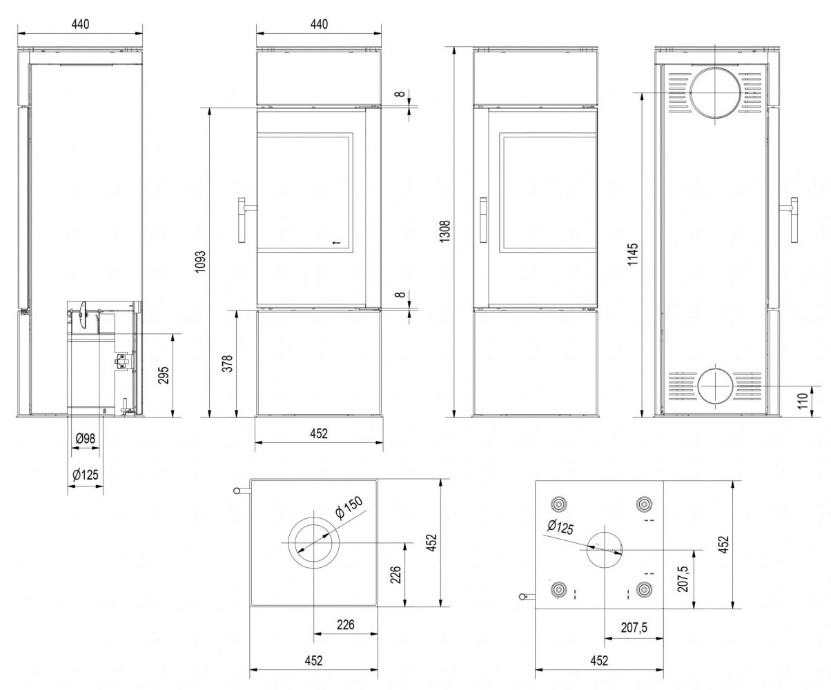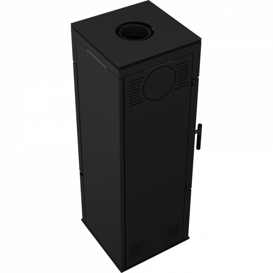 Veľké rohové presklenie s dekoratívnym sklom GLASS a veľká spaľovacia komora. Moderná vertikálna ručka uľahčuje zatváranie dvierok. Piecka je dokonale vzduchotesná a je teda vhodná aj do domov s rekuperáciou.
