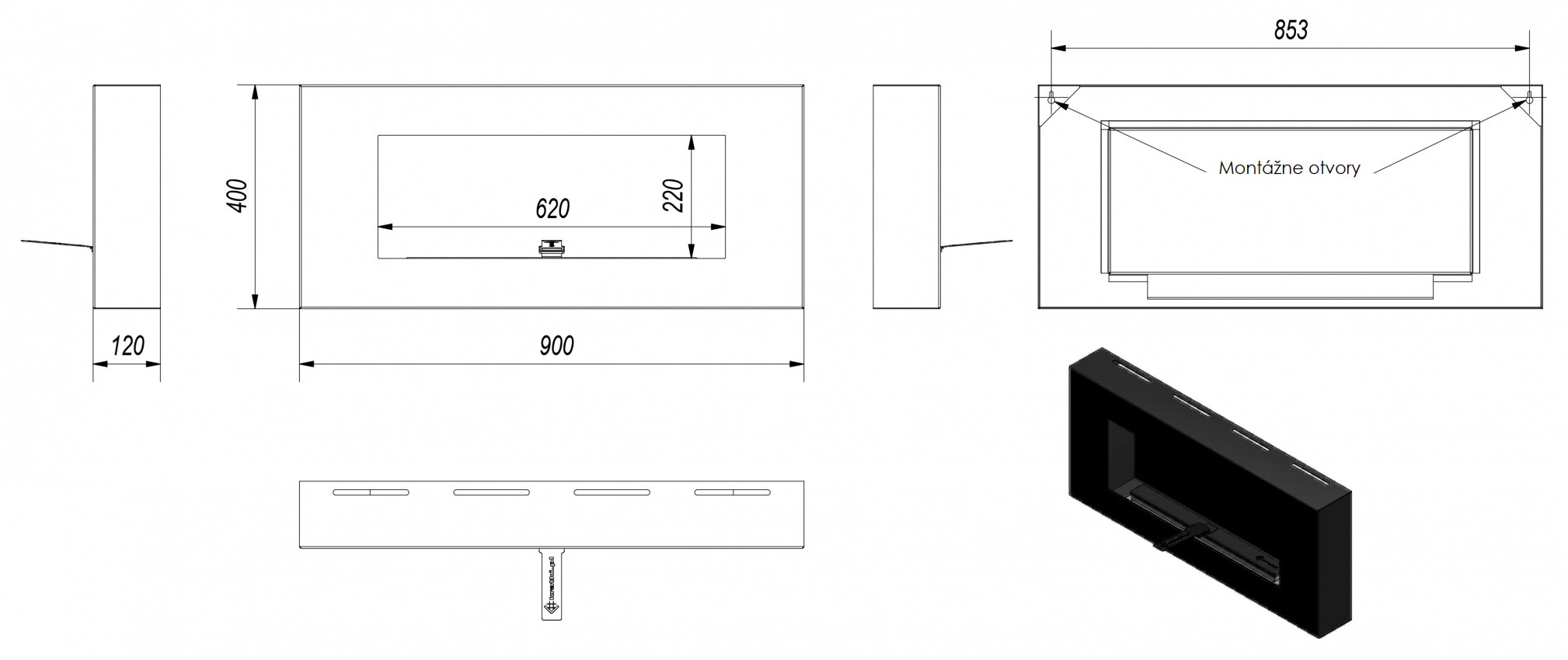 Závesný biokrb DELTA FLAT čierny 900x400mm